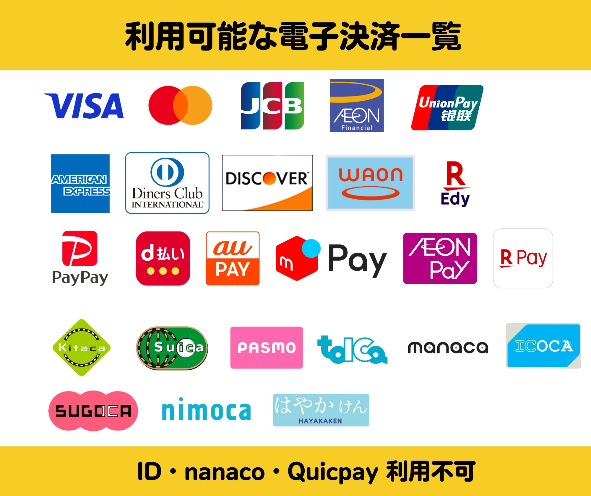 ※「iD」「nanaco」「QUICPay」でのお支払いには対応しておりません。あらかじめご了承ください。