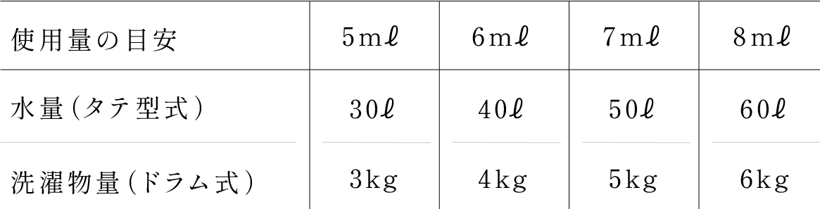 使用量は目安であり洗濯機の種類や衣類の汚れの程度によって変わります。洗剤は、洗剤の投入口または、洗濯槽に直接投入してお使いください。なお、自動投入の洗濯機でも使用することはできますが、機種によって洗剤の量が多く投入されることがありますので、洗濯槽に直接投入することを推奨しております。